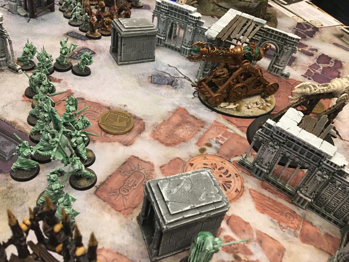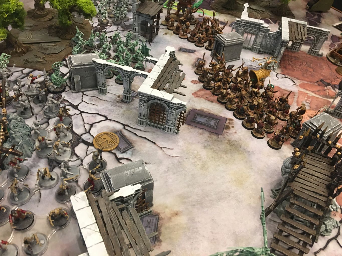 Sir William, mit seiner Legion of Nagash, hat mit 22 Punkten und einer „Tor“ oder auch Missionspunktedifferenz von 13 die Nase vorne. Zwei Spieltage bleiben den Blades of Khorne noch um ebenfalls auf 22 Punkte zu kommen. Jedoch werden die Blades of Khorne maximal eine Punktedifferenz von 10 schaffen. Somit ist die Legion of Nagash von Sir William uneinholbar vorne.