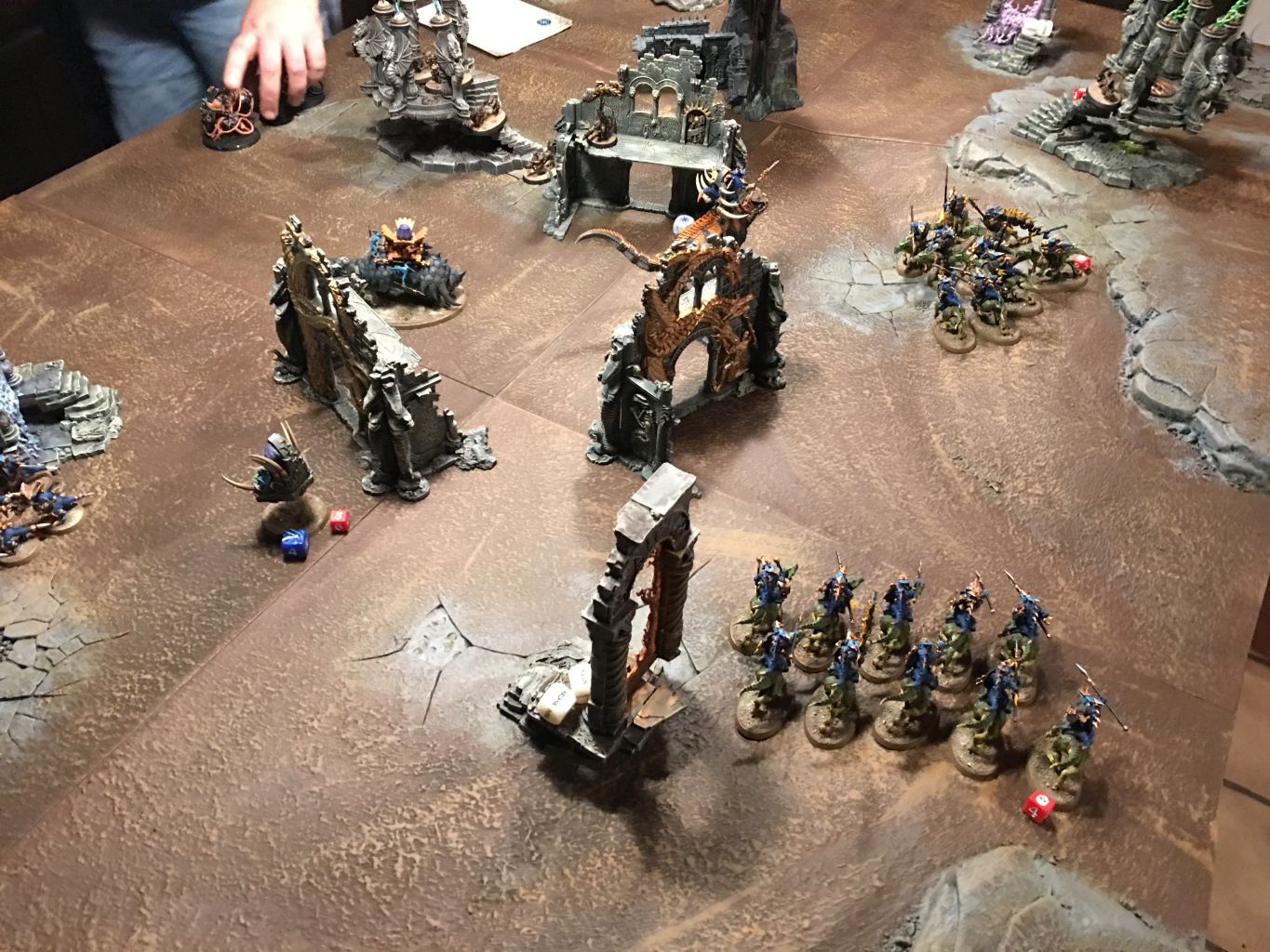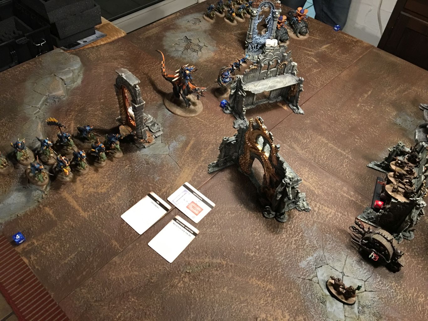 Durch die Open War Karten, musste ein Missionsziel gesichert werden welches auch transportiert werden durfte. Zudem war die Sicht zum schießen und zaubern auf 12″ beschränkt.