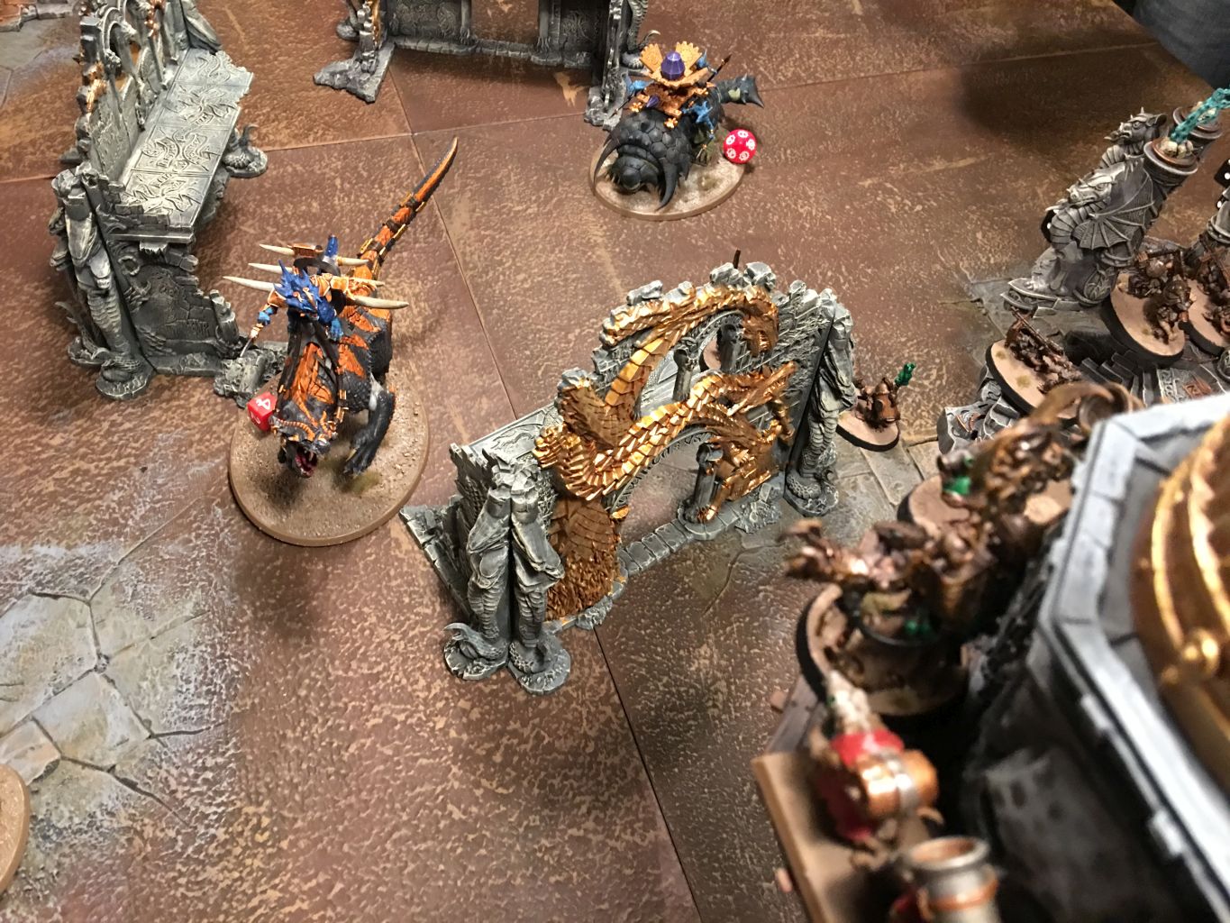 - Durch die Fähigkeit „Herrscher von Raum und Zeit“ brachten die Seraphon ihre Bastilladons in Position