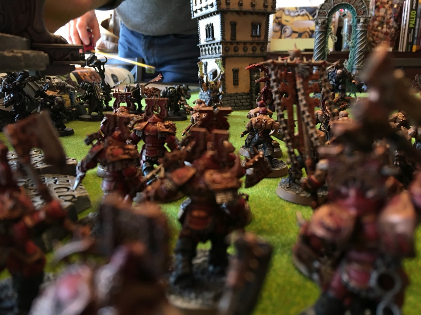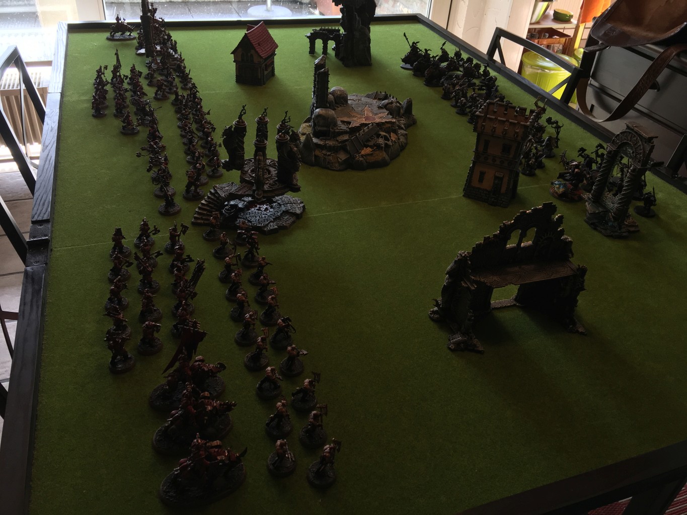 So rückten beide Armeen weiter aufeinander zu. Da weder die Khorne Bloodbound noch die Ironjaws über nennenswerte Fernkampfattacken (außer Zauber und Gebete) verfügten, blieb den beiden natürlich nichts anderes übrig.
