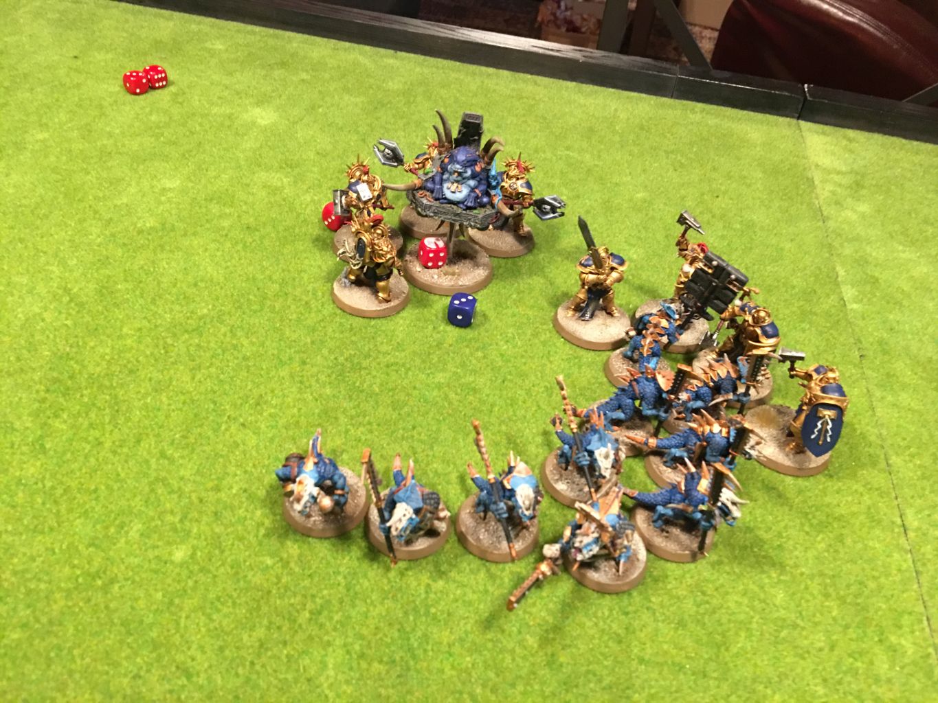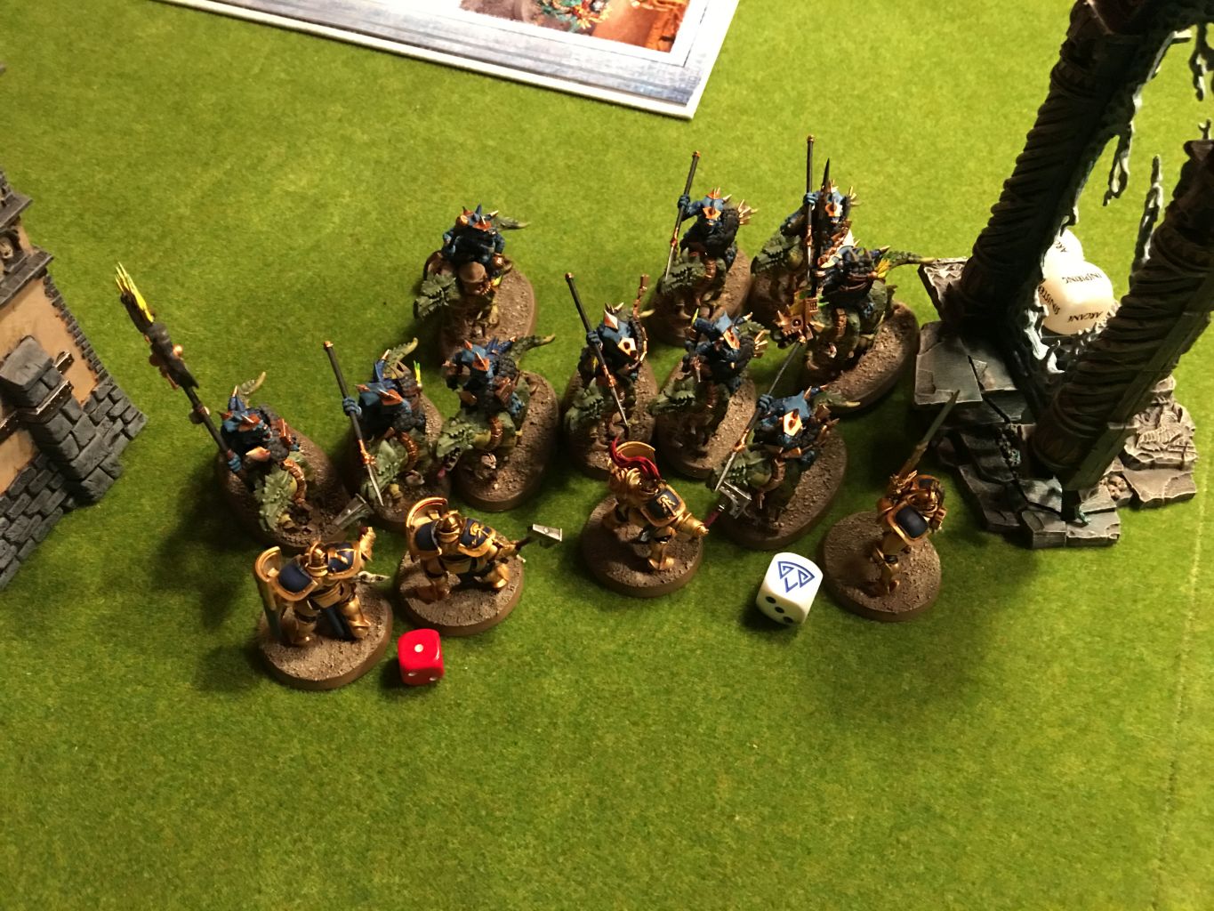 - Einen (fast) entscheidenden Fehler machten die Seraphon gleich zu Beginn, eine 10 Mann starke Einheit Saurus Knights wurde als Verstärkung zum beschwören nicht aufgestellt.