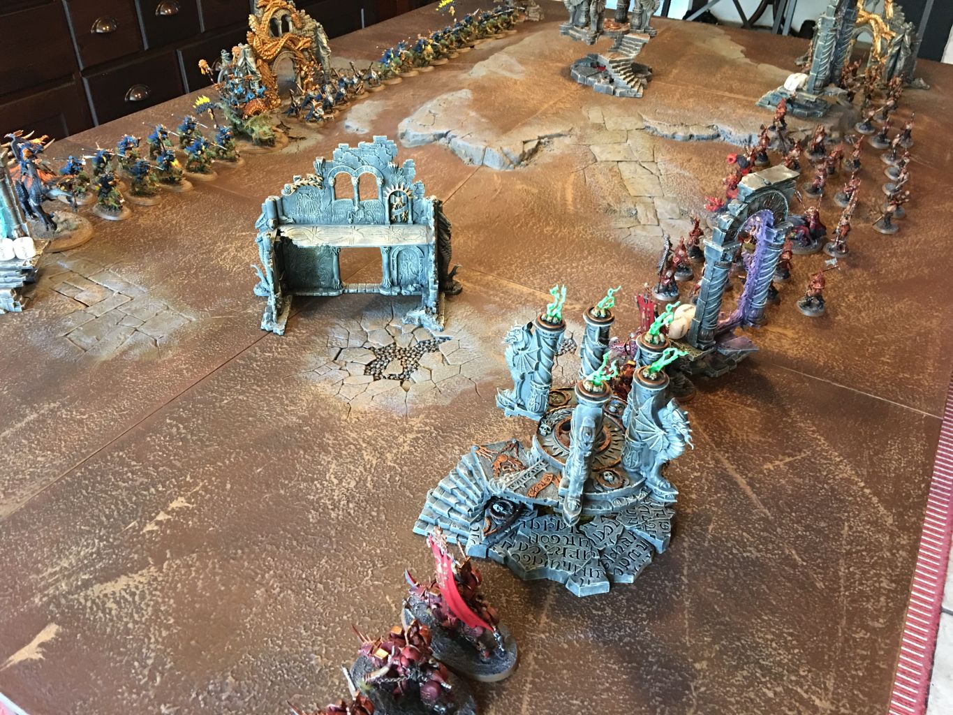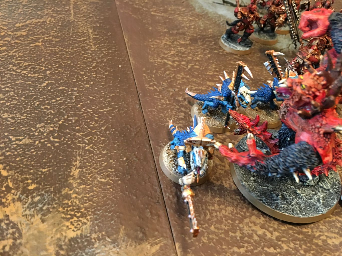 Noch immer erbost über die Flucht der Seraphon (siehe AoS-Schlacht [0015]) machte sich der Mighty Lord of Khorne höchst persönlich auf den Weg diese Schmach bei Khorne vergessen zu machen. Als besonderes Bonbon hat er Scyla Anfingrimm mit die in Schlacht genommen. Es dauerte nicht lange als sich eine Schlachtlinie der Seraphon aufbaute um sich den Khorne Bloodbound in den Weg zu stellen.