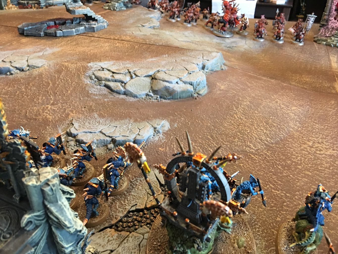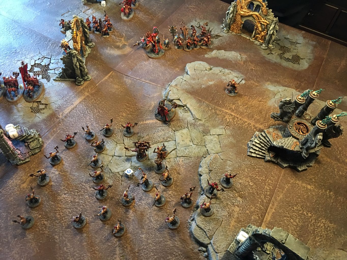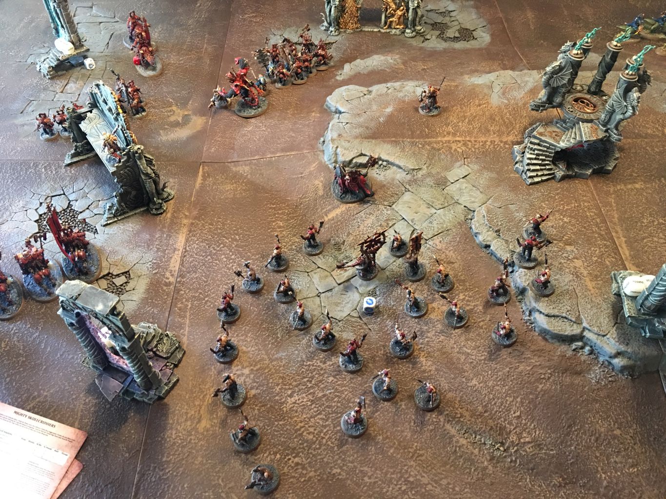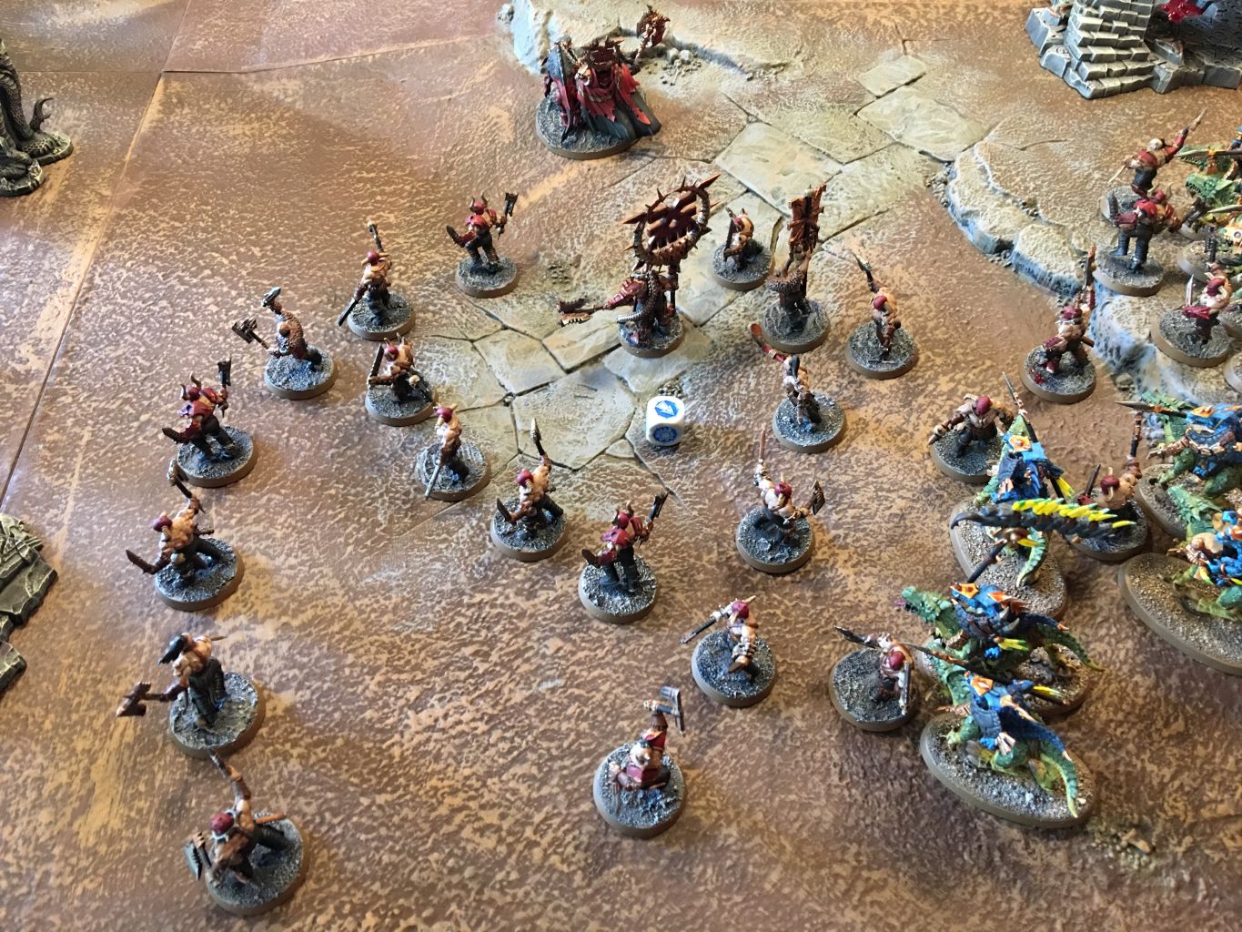 - Auf der linken Flanke konnten die Mighty Skullcrusher Einheiten in die Saurus Warriors hereinbrechen und diese dezimieren.