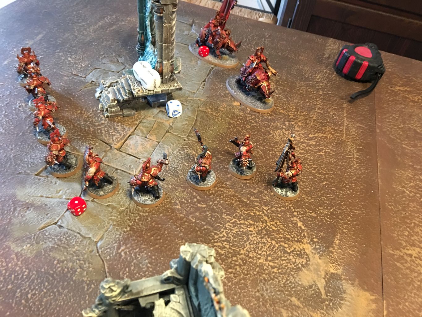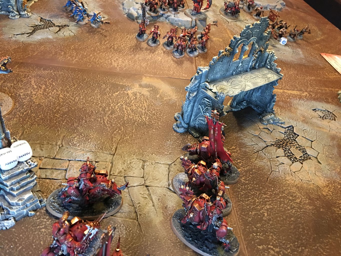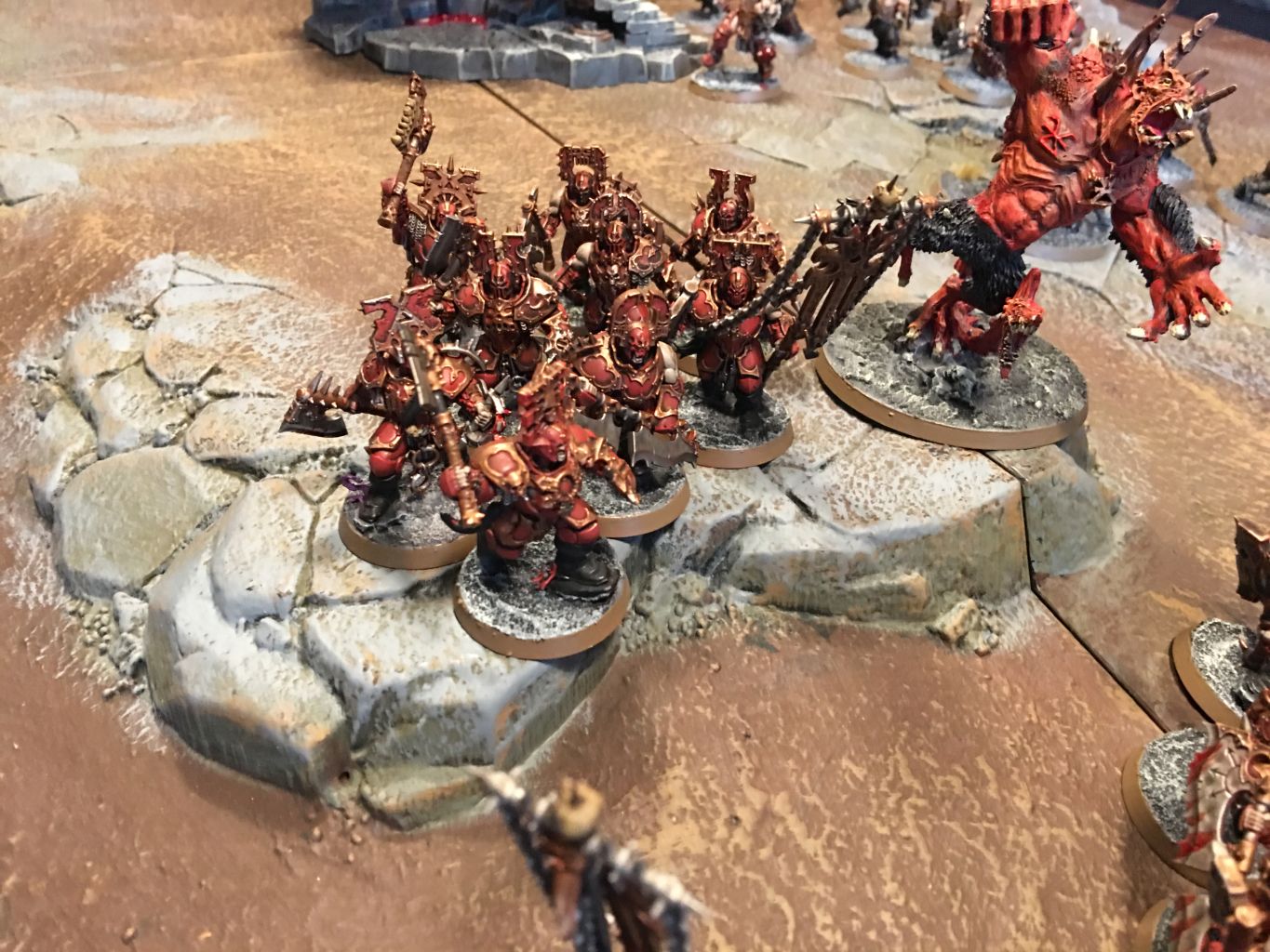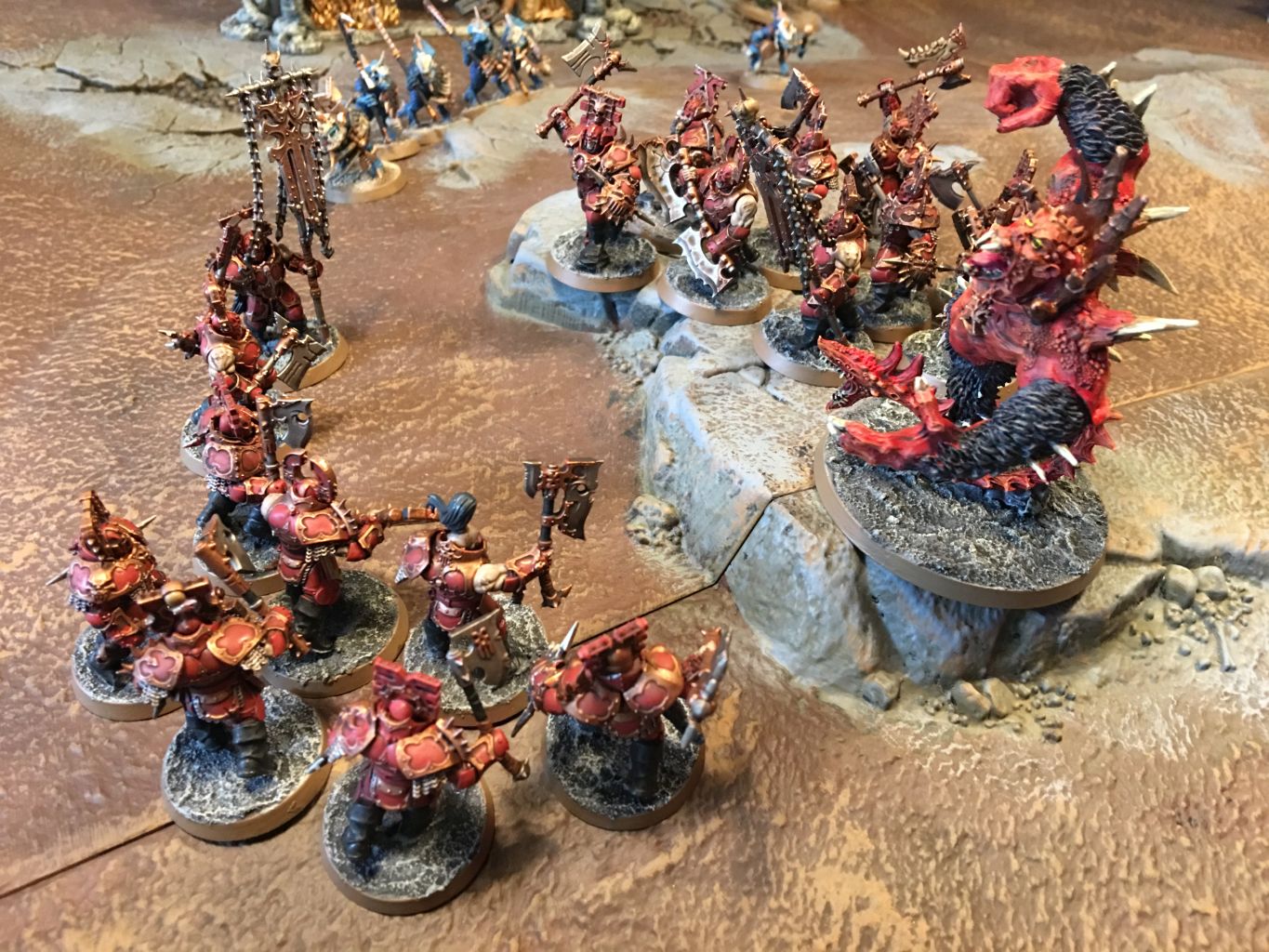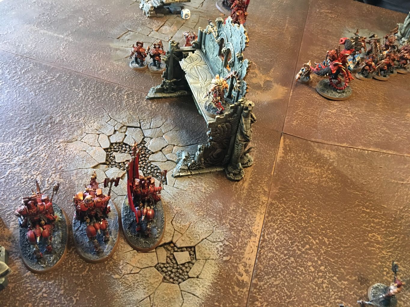 - Die Khorne Bloodbound hatten sich zentral aufgestellt. Durch ihre Masse ragten die Truppen Khornes in die Flanken des Schlachtfelds.