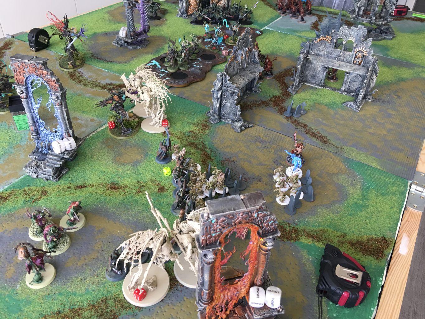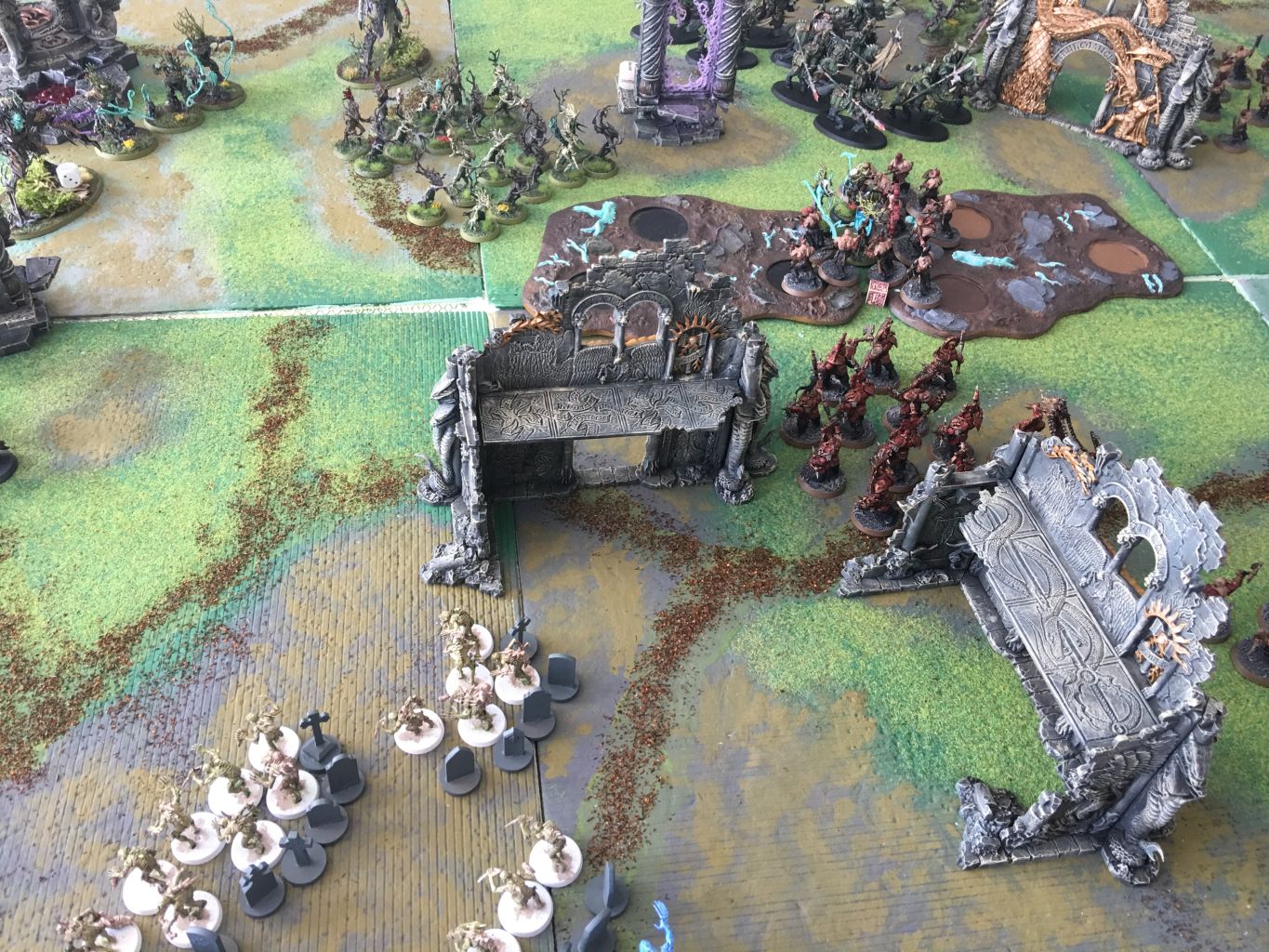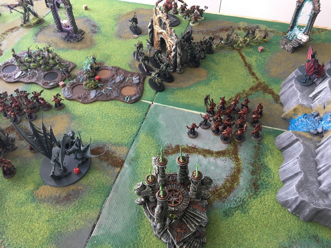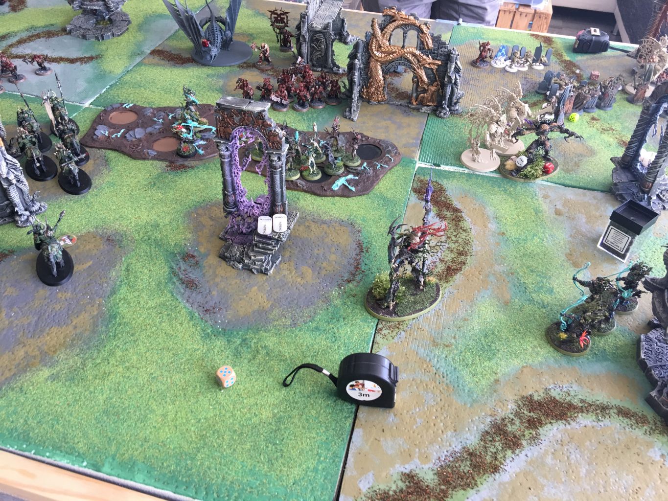 - Das Mittlere Missionsziel wurde stark umkämpft. Mal waren Khornes Anhänger in der Überzahl, mal waren es Sylvaneth oder Diener Nurgles