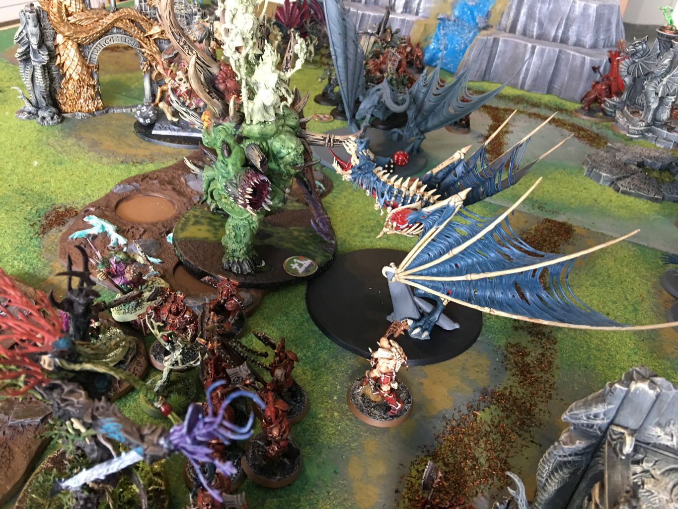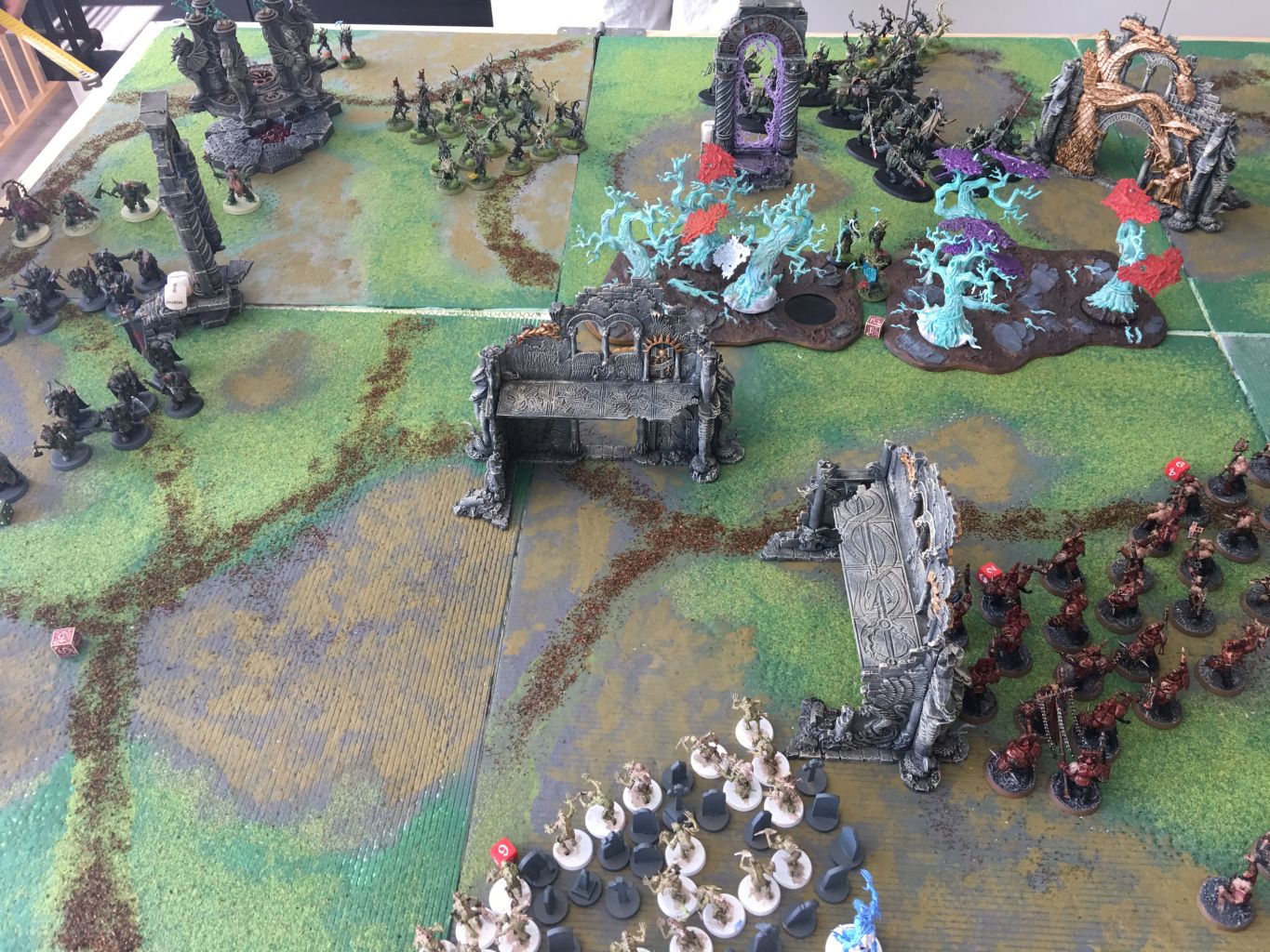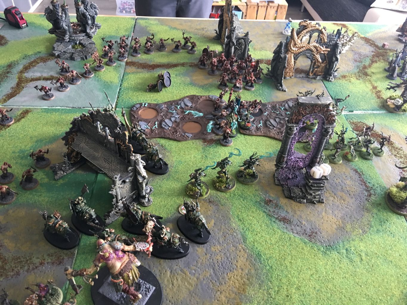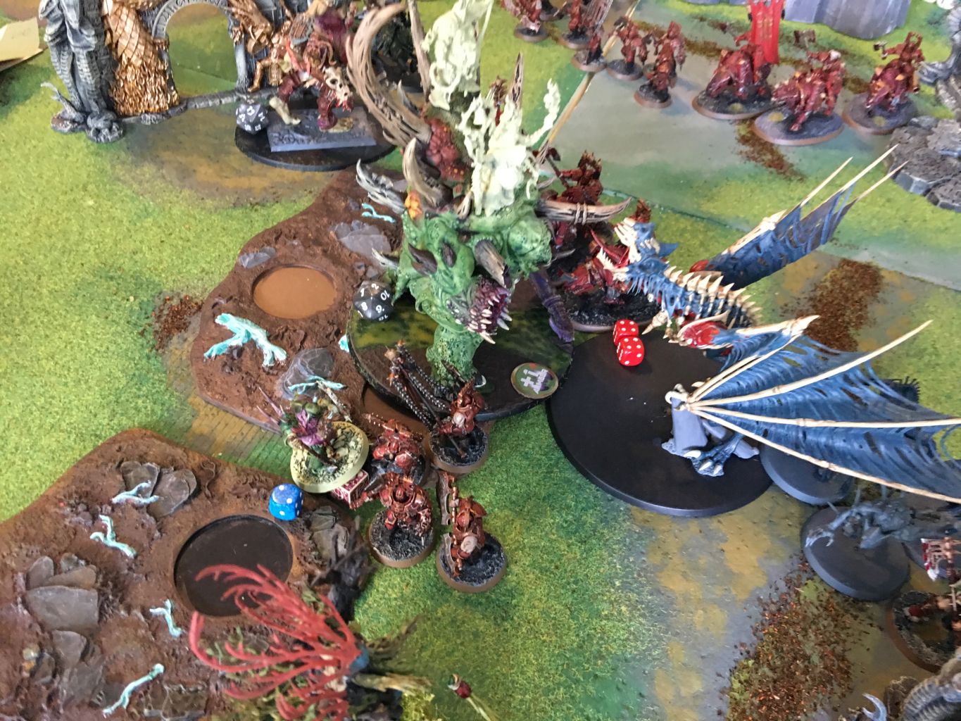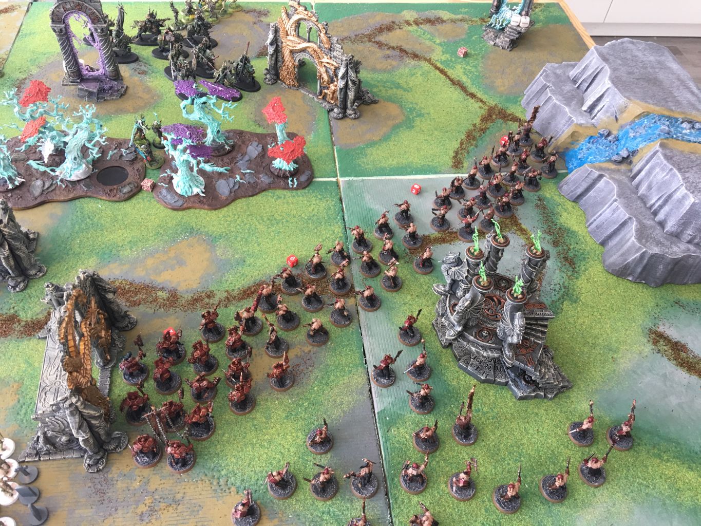 - Das Mittlere Missionsziel wurde stark umkämpft. Mal waren Khornes Anhänger in der Überzahl, mal waren es Sylvaneth oder Diener Nurgles