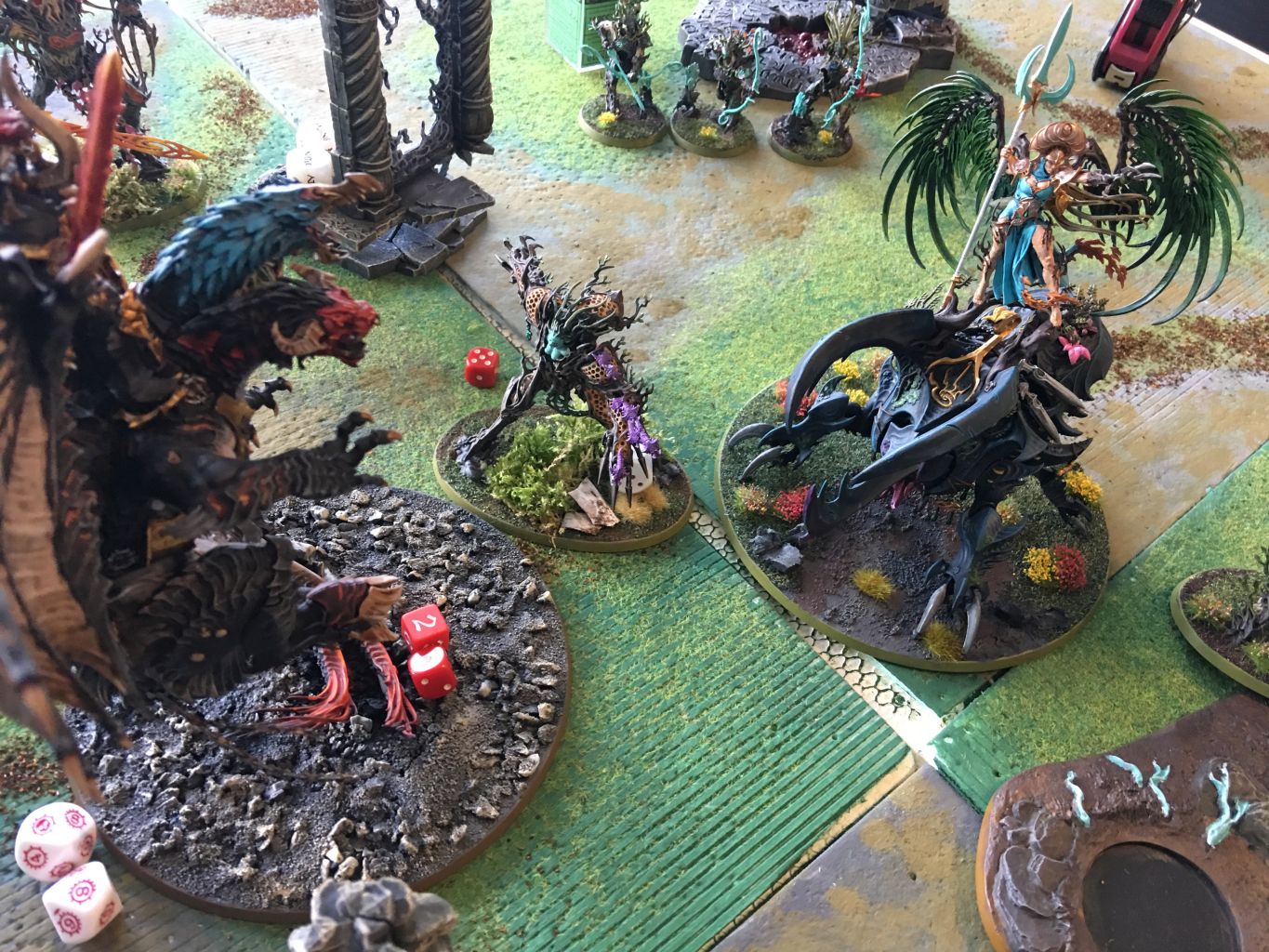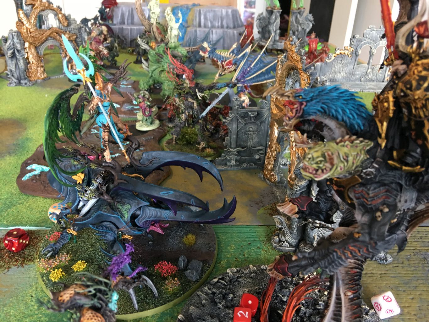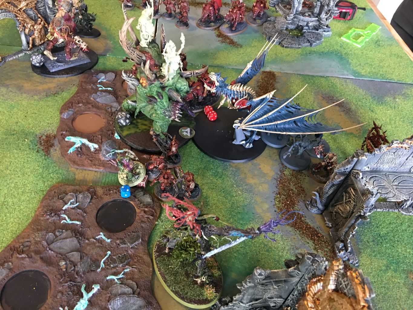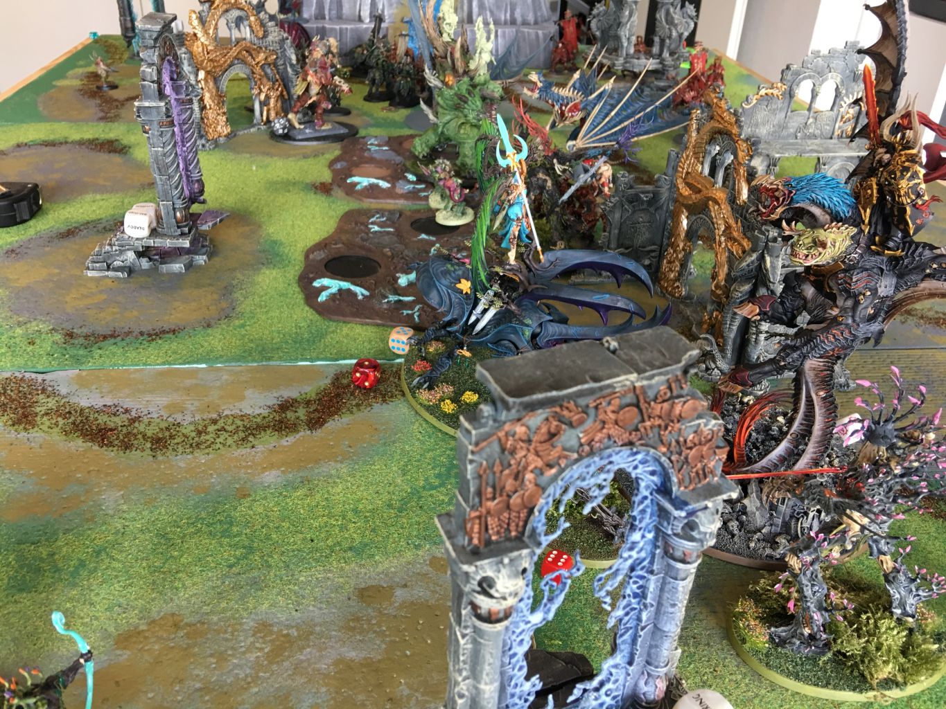 - Das Mittlere Missionsziel wurde stark umkämpft. Mal waren Khornes Anhänger in der Überzahl, mal waren es Sylvaneth oder Diener Nurgles