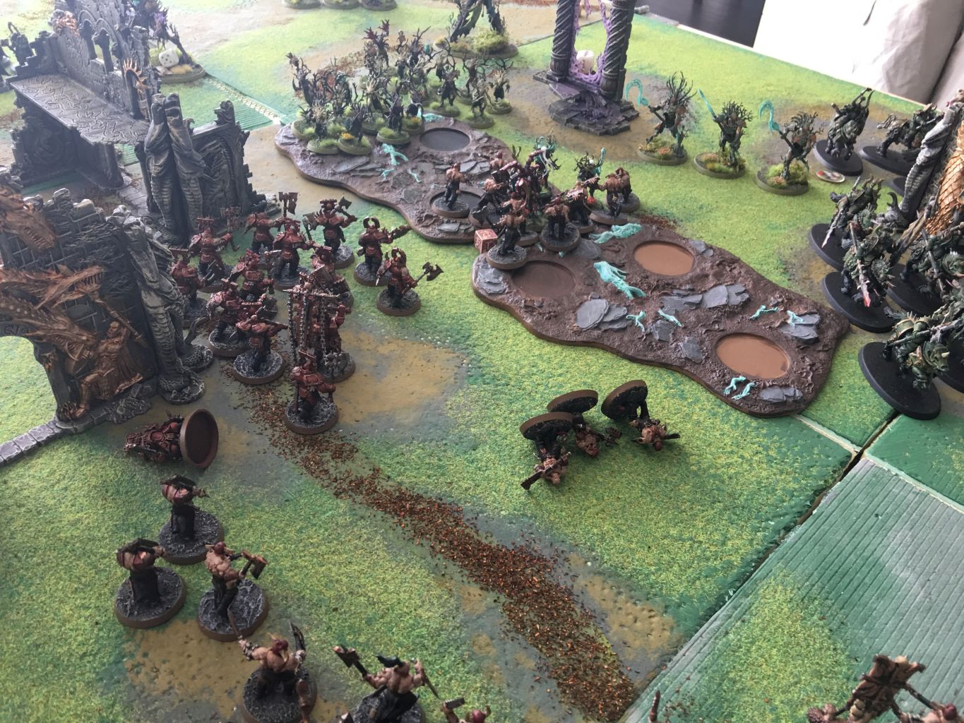 Ihnen gegenüber standen der Flesh Eaters Court und die Khorne Bloodbound, welche von niemanden geringeren als Archaon in die Schlacht geführt wurden.