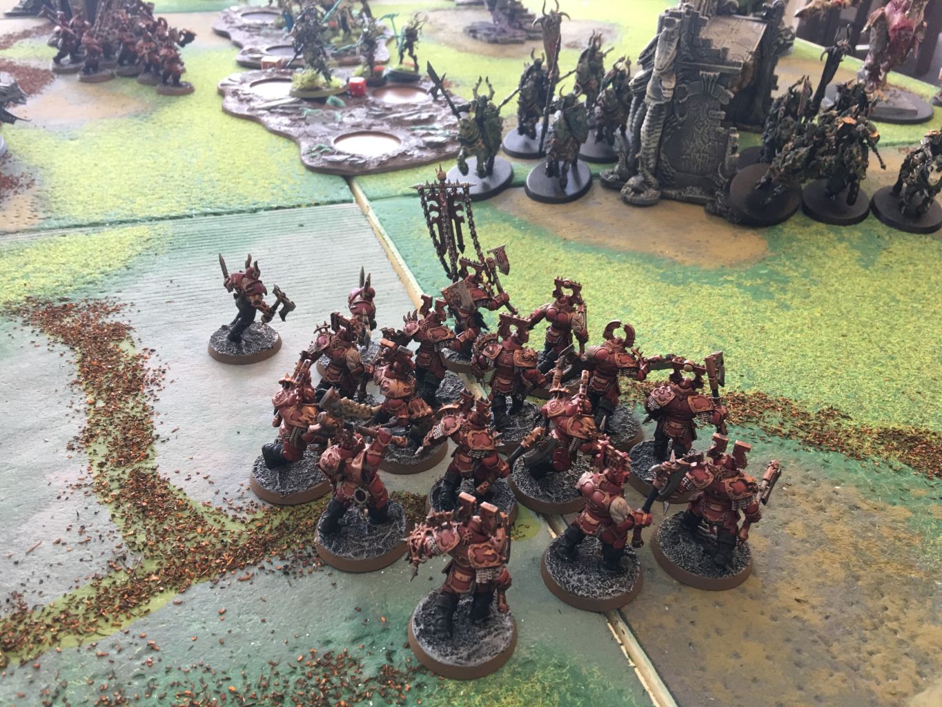 - Bloodreaver der Khorne Bloodbound stürmten von diesen Wäldern unbeeindruckt bereits in Runde 1 in einen Nahkampf