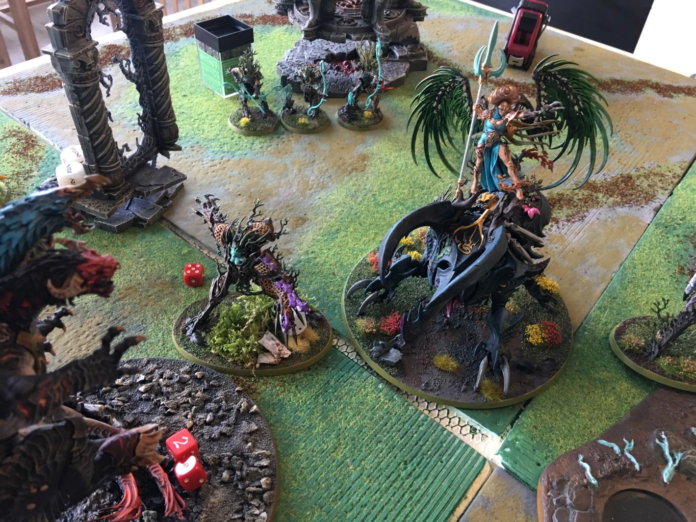 - Durch den Slayer of Kings schaffte es Archaon den Treelord sofort auszuschalten. Alarielle sollte nur noch 6 Wounds haben. Drycha das zähe Biest hielt immer noch Stand.