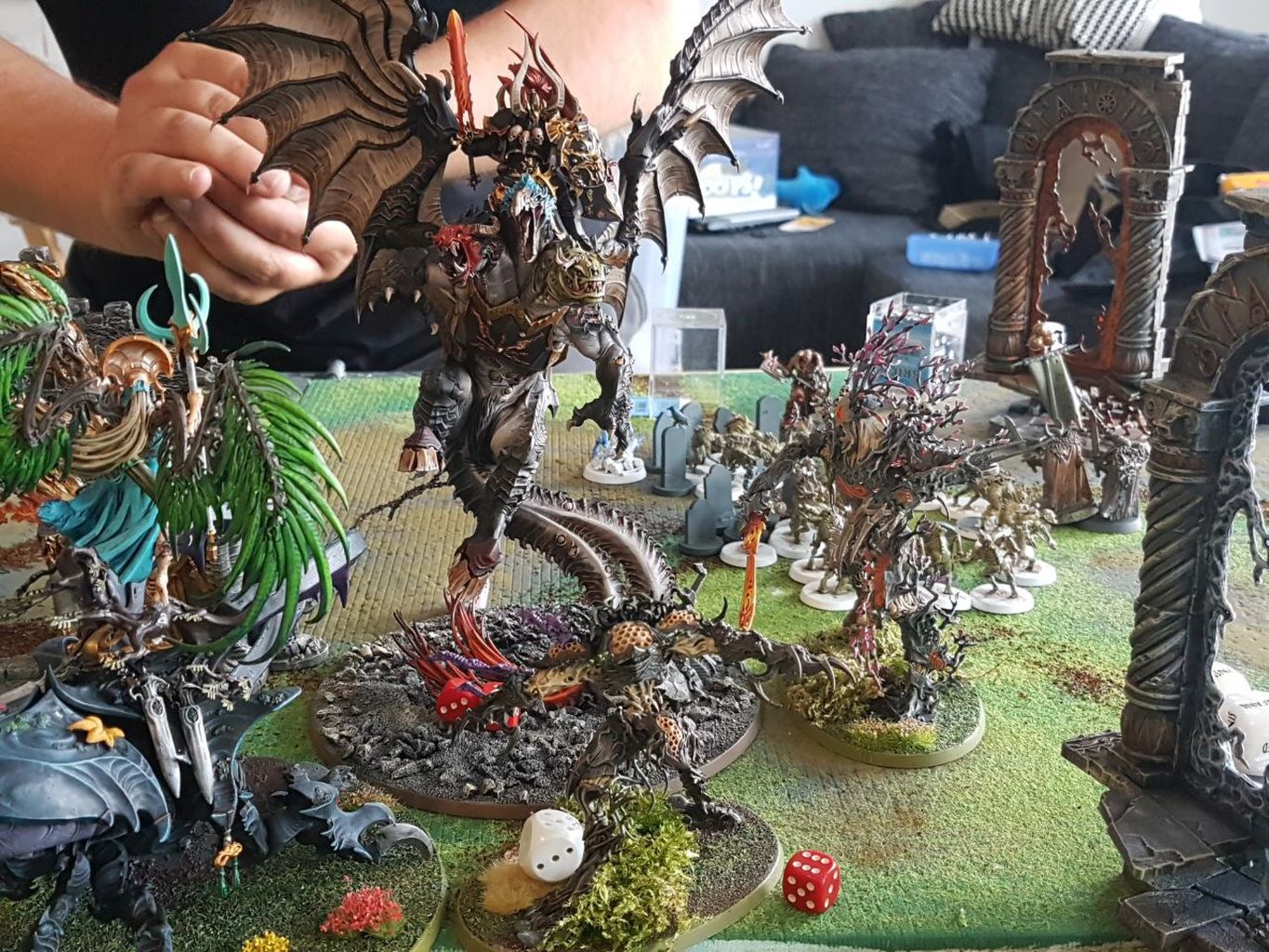 - Wirklich nervig für den Gegner waren die Einheiten der Death Armee. Ghoule und Flederbestien heilten sich in ihrer Heldenphase immer wieder hoch. Weder die Sylvaneth, noch die Diener Nurgles konnten genug Attacken aufbringen um eine Einheit der Ghoule komplett zu vernichten.