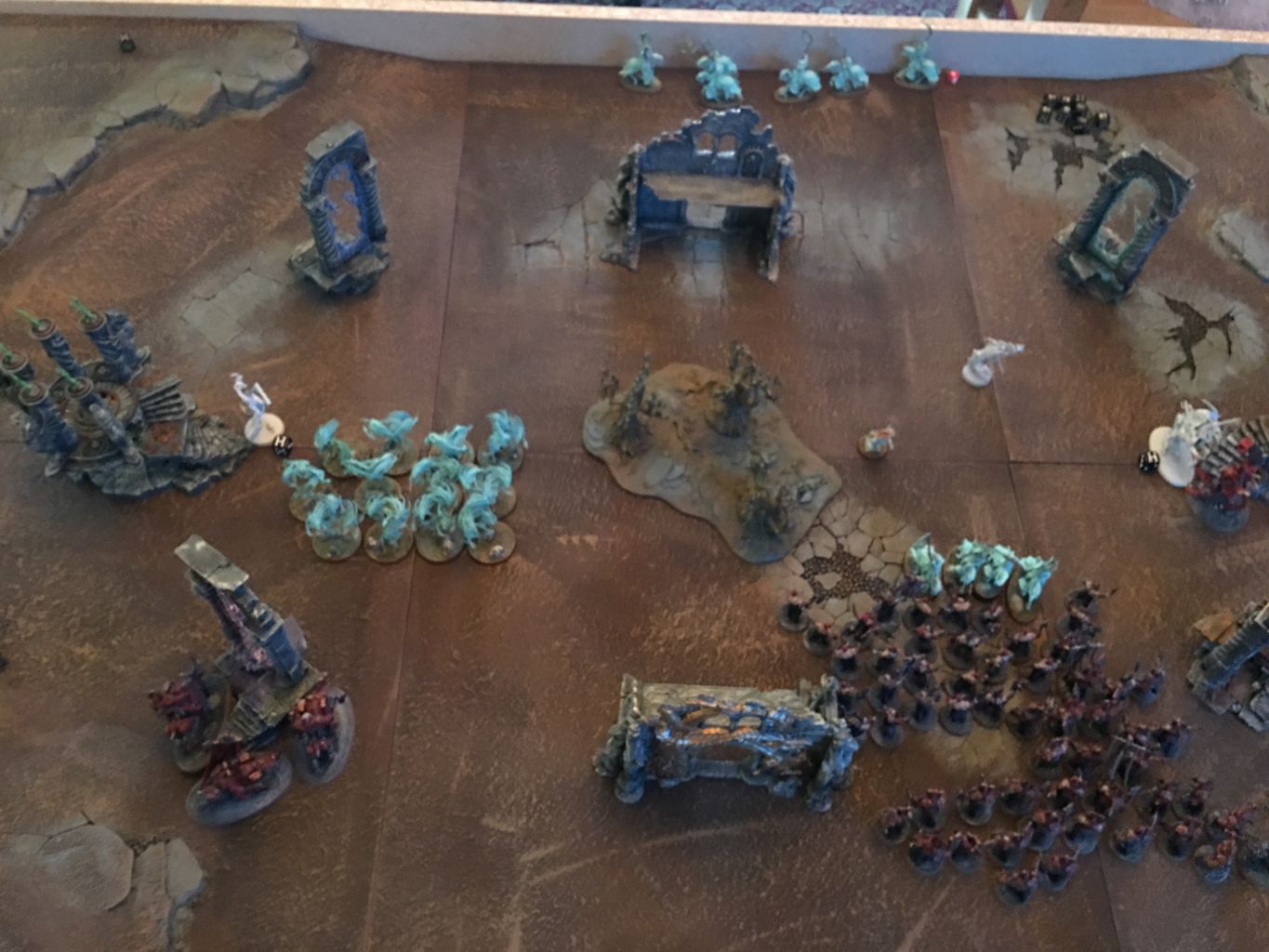 Ein sehr interessantes Spiel. Die Nighthaunt haben hier ganz klar von ihren Sonderregeln des Fliegens, ihrer Mobilität und ihrer Zähigkeit profitiert. Die Khorne Bloodbound haben sich zu geschlossen aufgestellt und waren dadurch zu langsam und zu unflexibel um beide Missionsziele zu erobern.