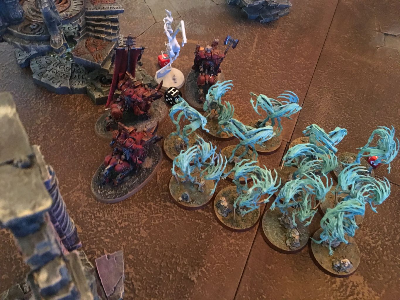 - Die Nighthaunt eröffneten die Schlacht und bewegten sich zielsicher zu den beiden Misionszielen.