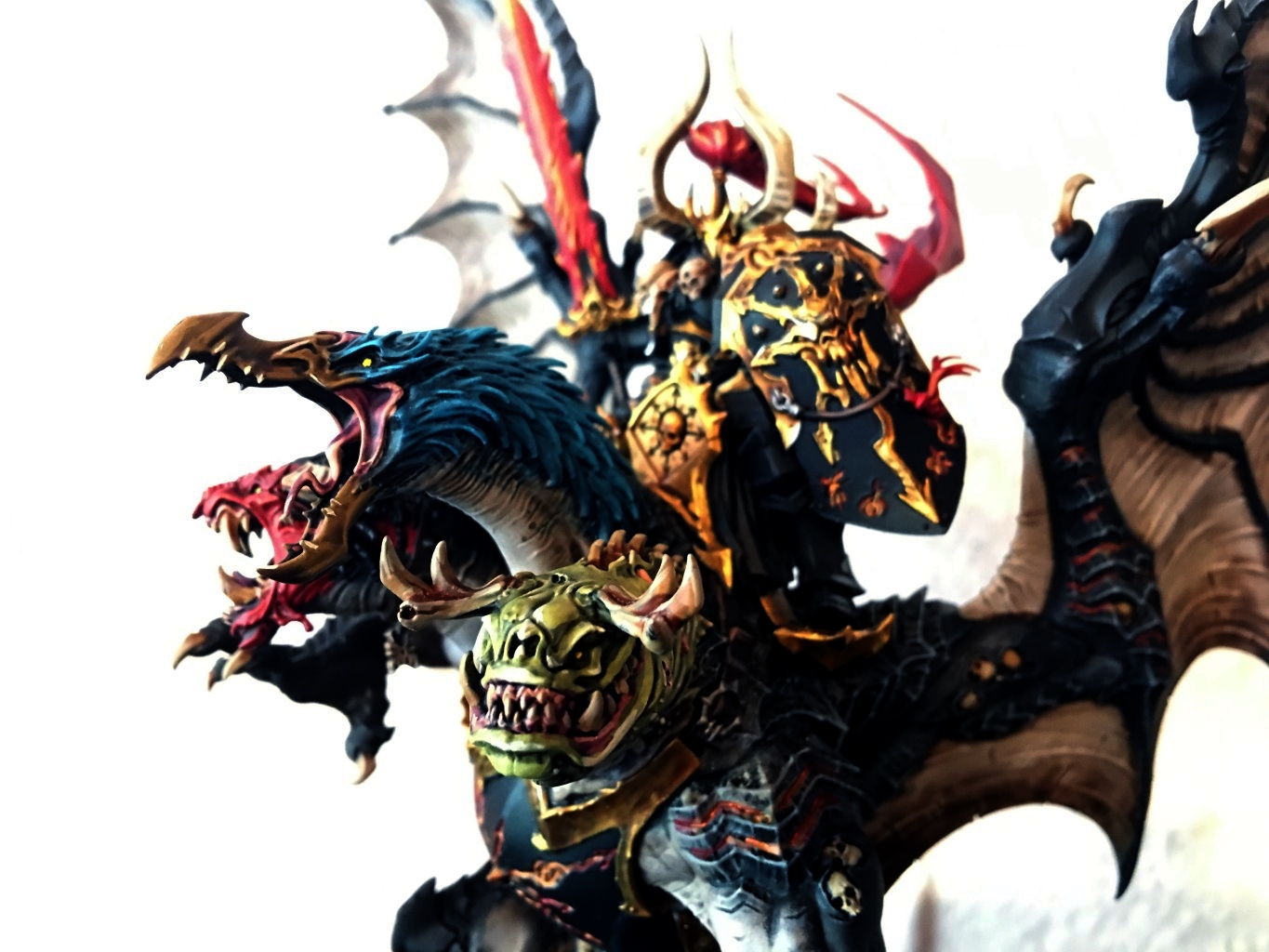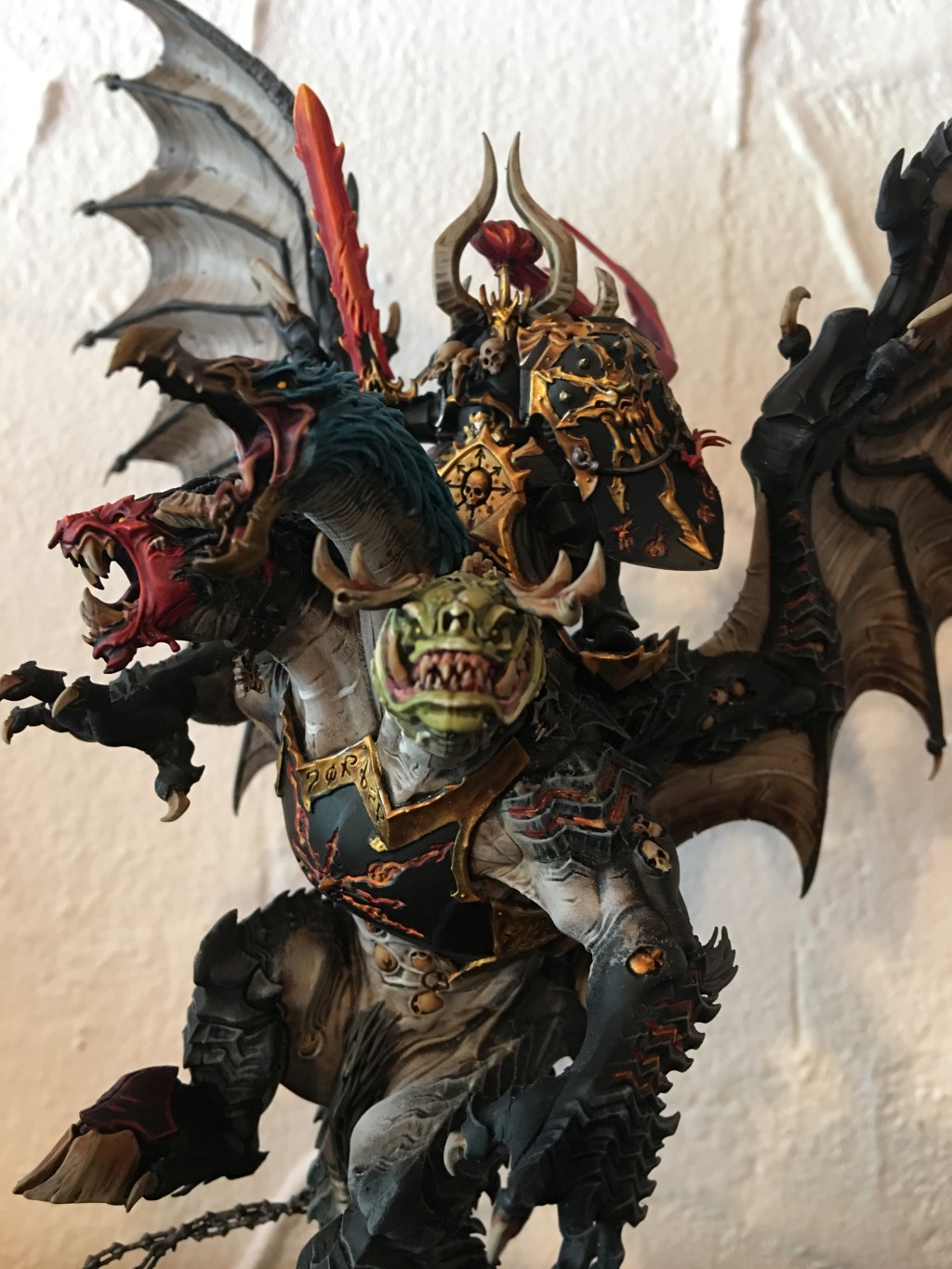Nachdem ich die Khorne Bloodbound und die Stormcast Eternlas fertig bemalt hatte, sollte endlich ein Großmodell her. Sozusagen als besonderes Bonbon nach all der Arbeit mit den vielen kleinen Modellen (über 170 Figuren). Meine Wahl fiel auf Archaon – Exalted Grand Marshal of the Apocalypse.