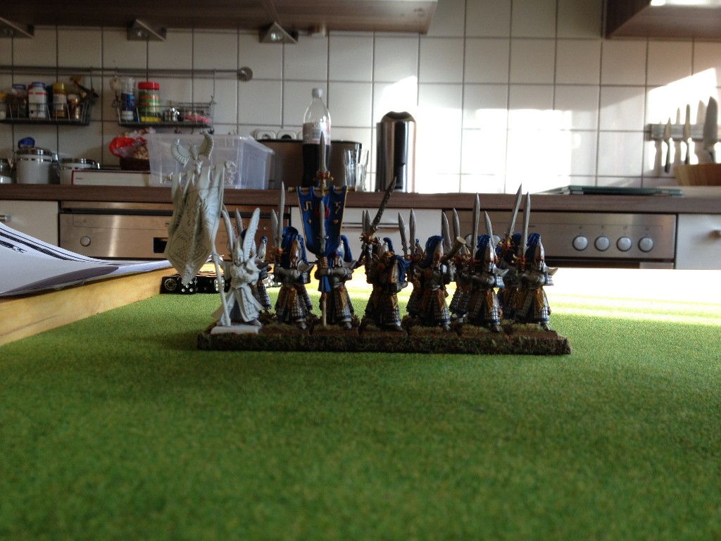 Die Hochelfen hatten im Vergleich eher weniger Beschuss. Bogenschützen, Seegarde und Repertierspeerschleuder waren im Kampf.