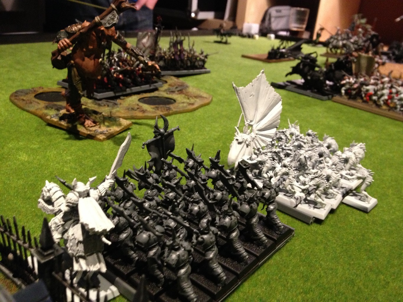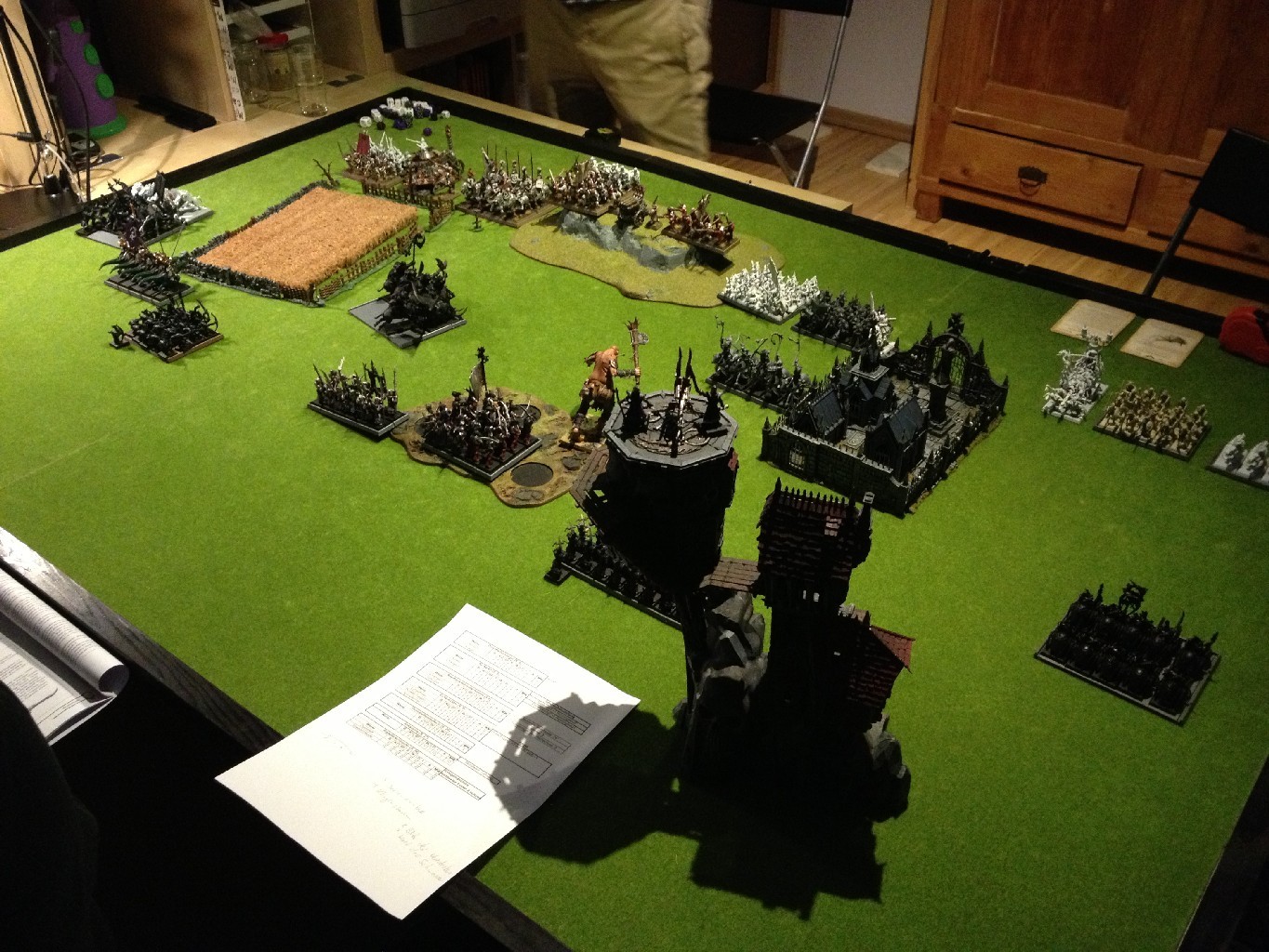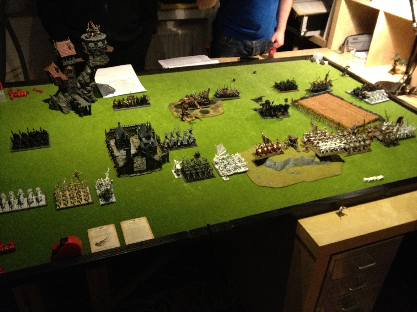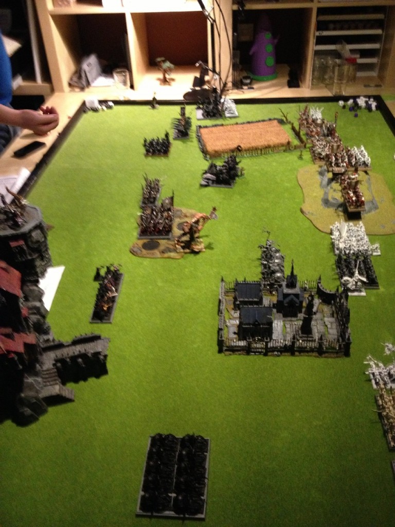 Ganz spontan haben wir uns im dicksten Schneegestöber dazu entschlossen eine weitere Warhammer Schlacht auszutragen. In dieser Schlacht verbündeten sich die Orks & Goblins von Thufir mit den Dunkelelfen von Kalatas. Sie traten gegen das unheilige Bündnis aus Imperium (von Swenson) und Vampirfürsten von Tito Fuente an.