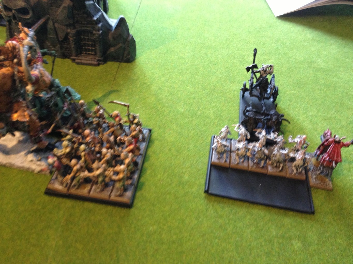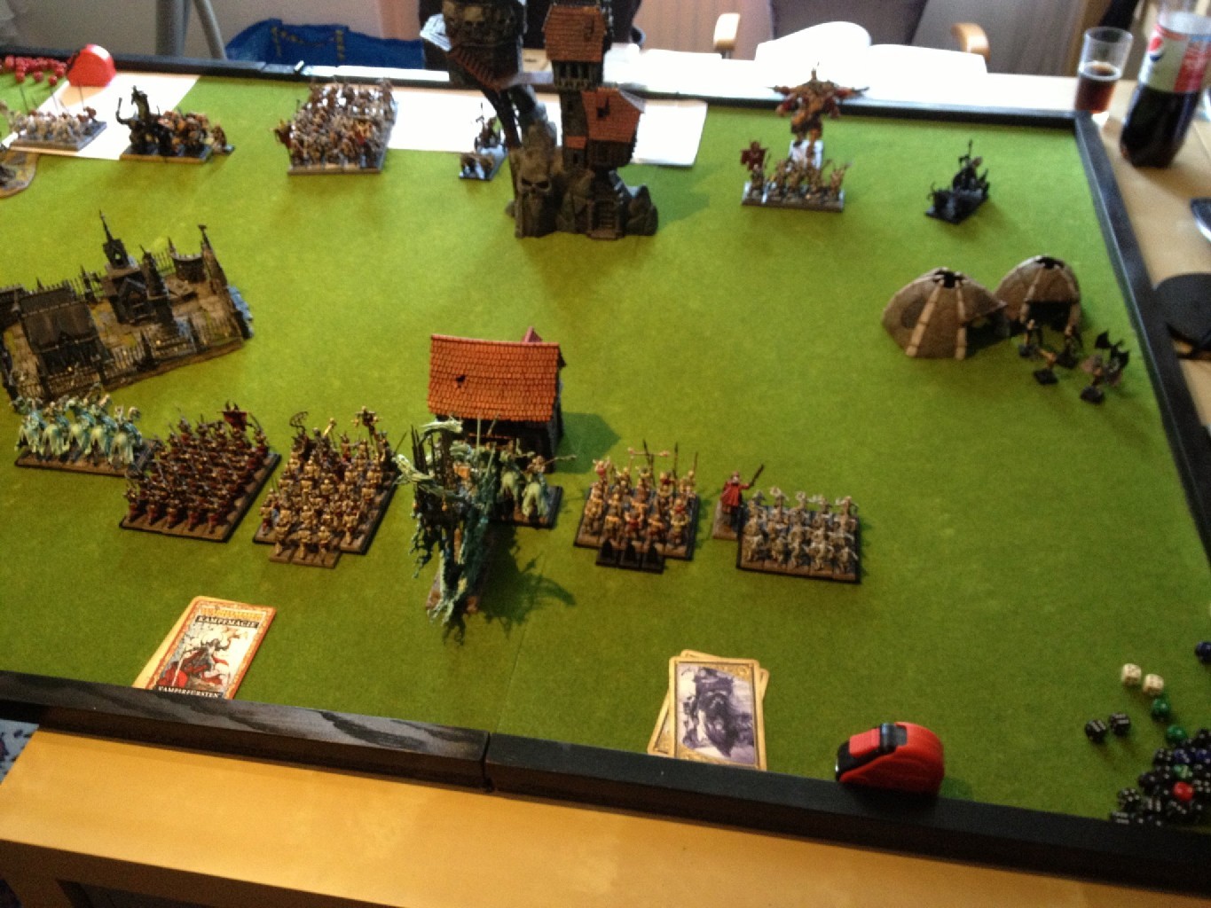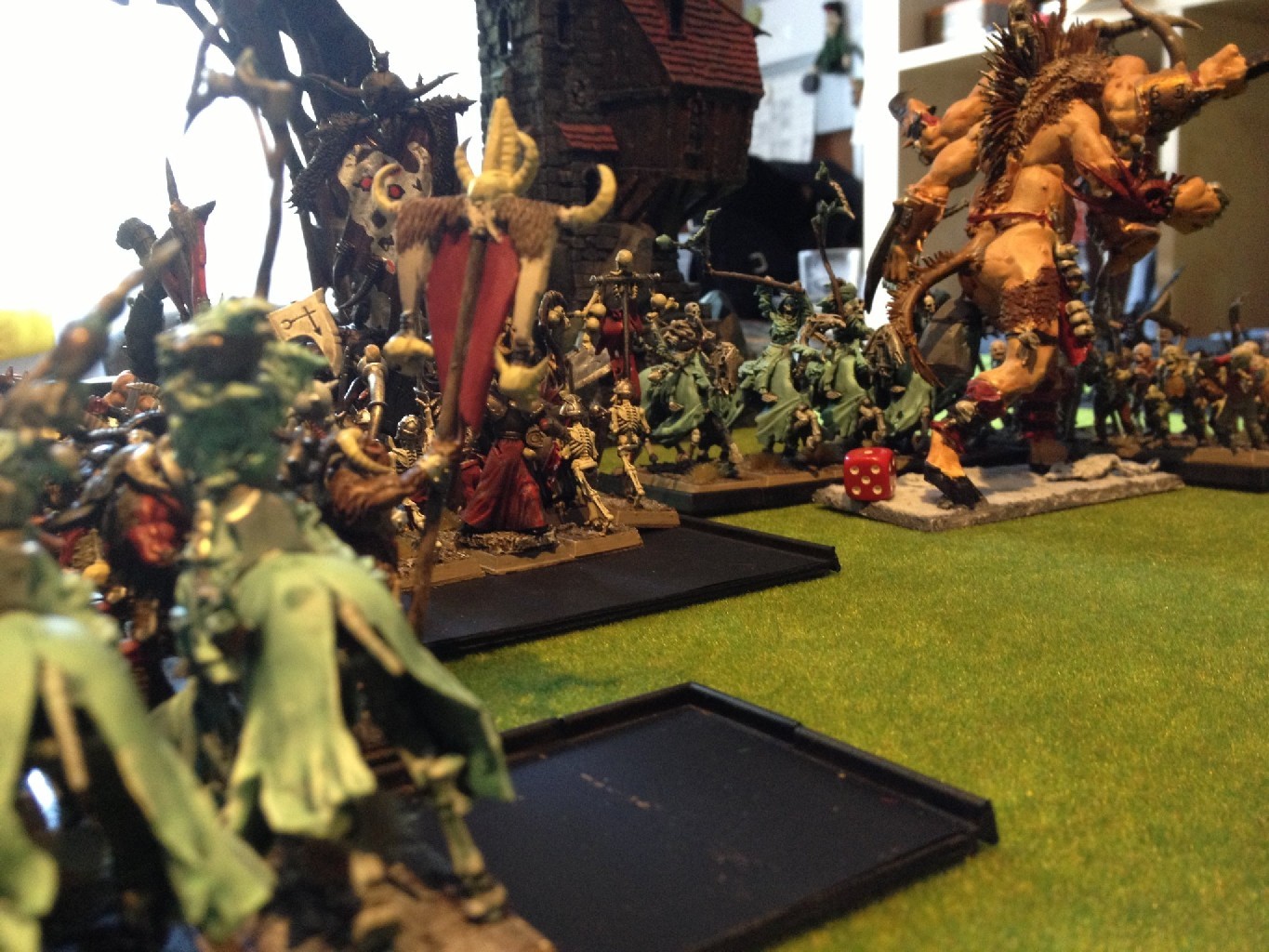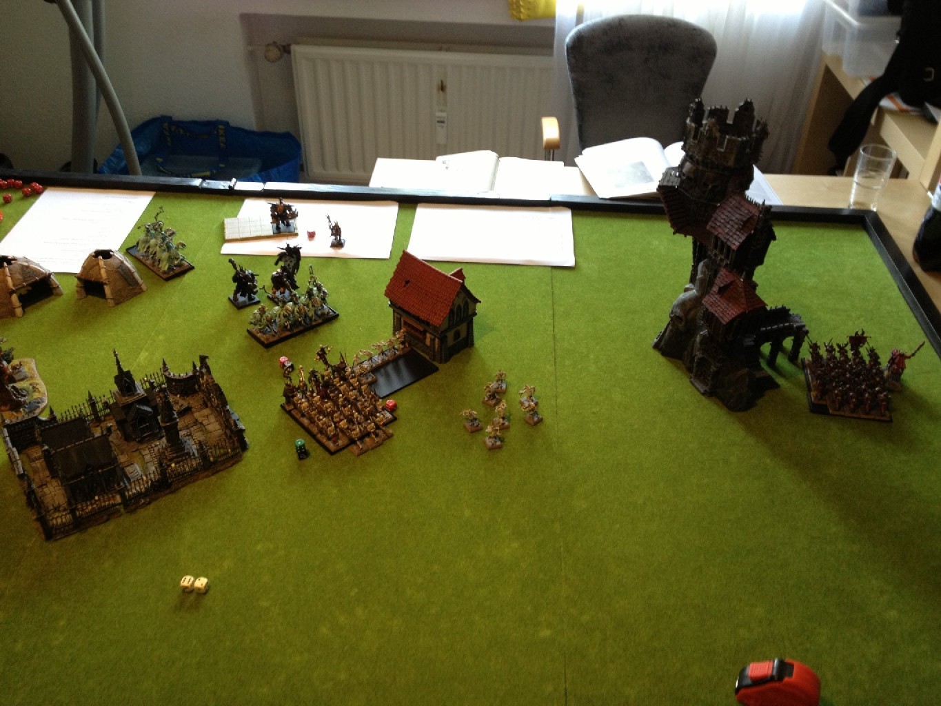 Zeitlich konnten heute zwei Schlachten gespielt werden. Die erste Schlacht dominierten die Vampirfürsten und konnten schon in Runde fünf einen Sieg einfahren, indem alle Einheiten der Tiermenschen vernichtet wurden!
