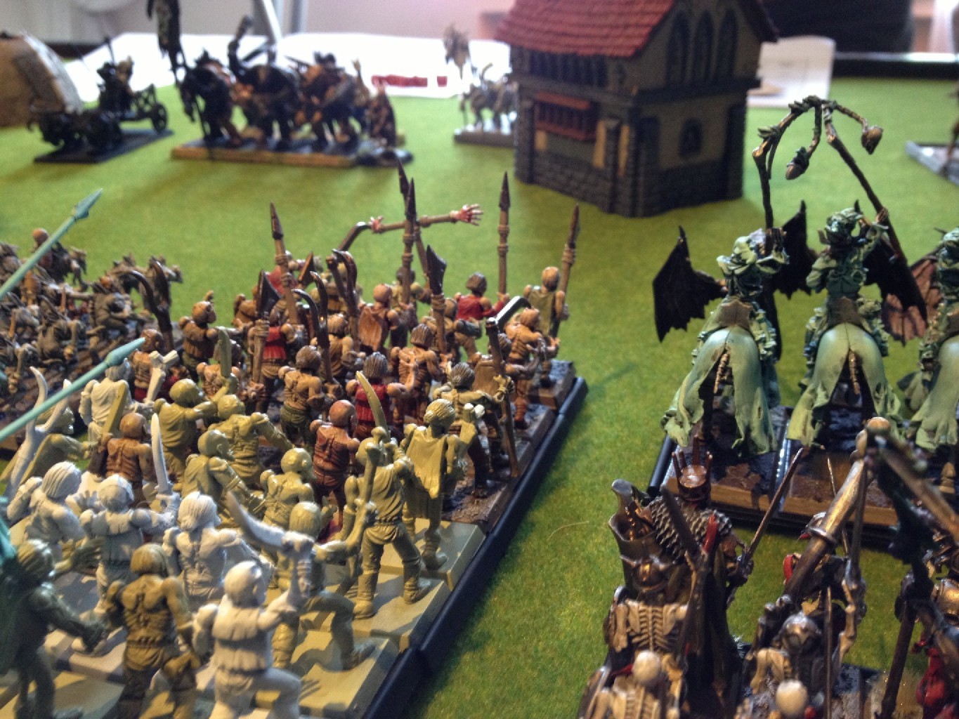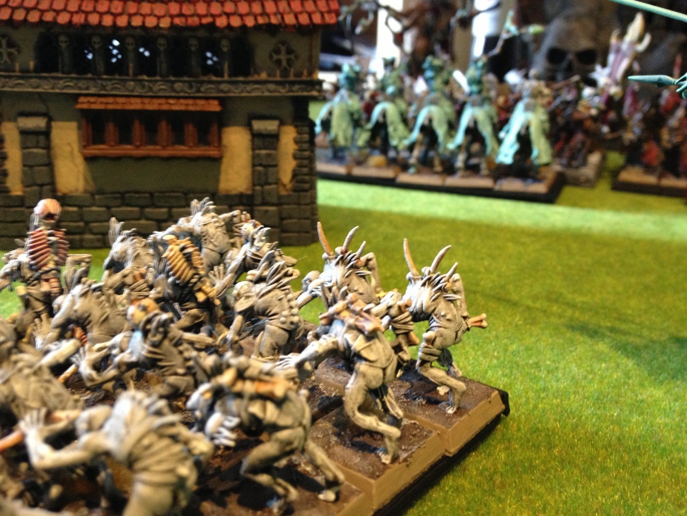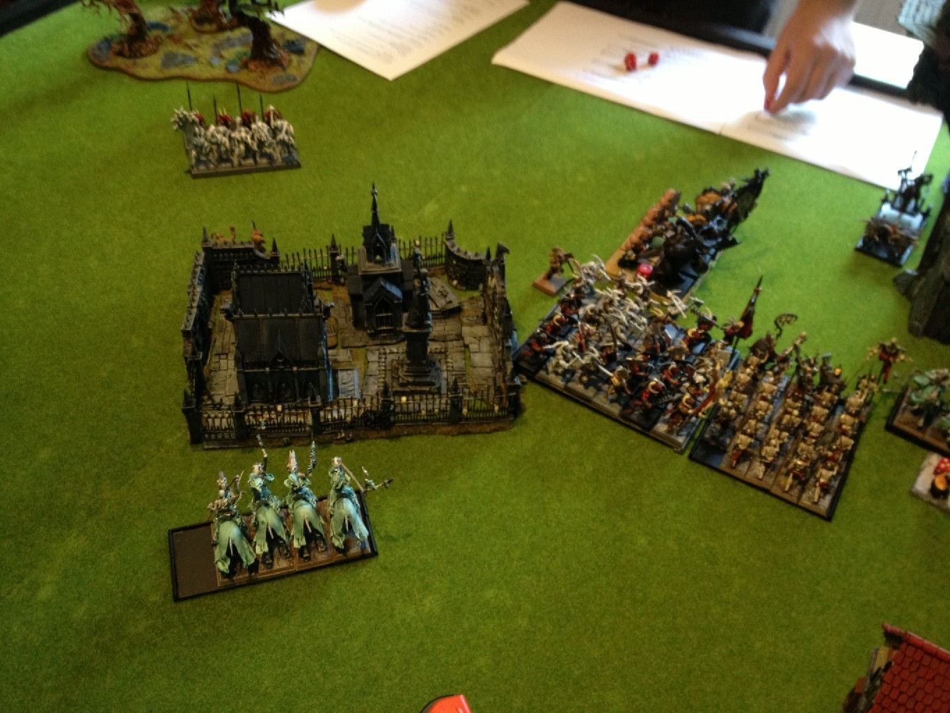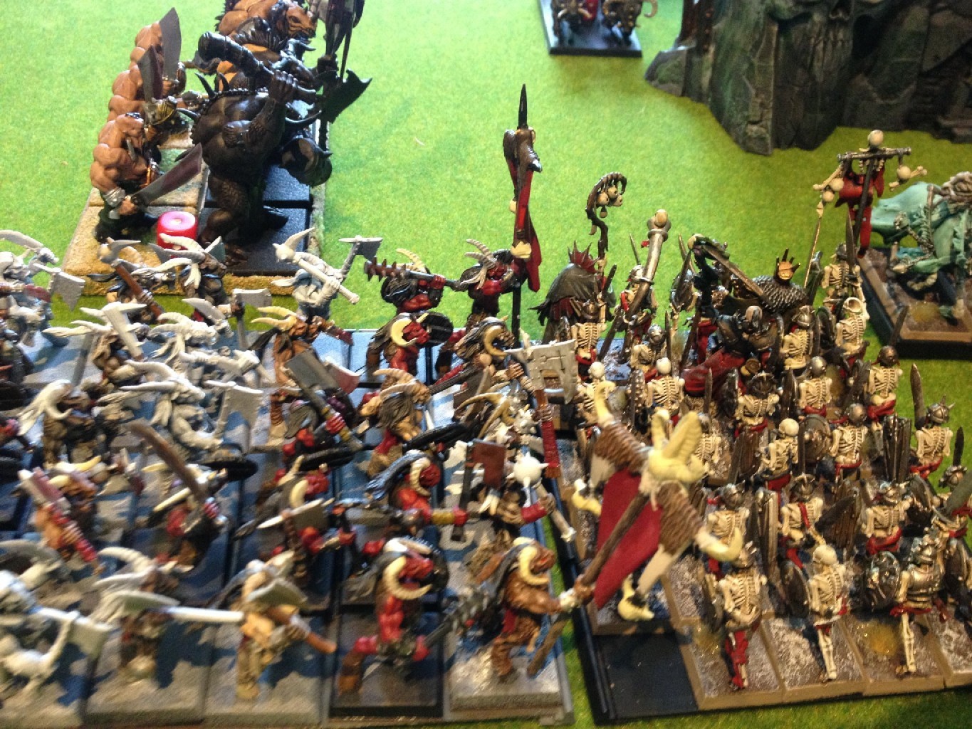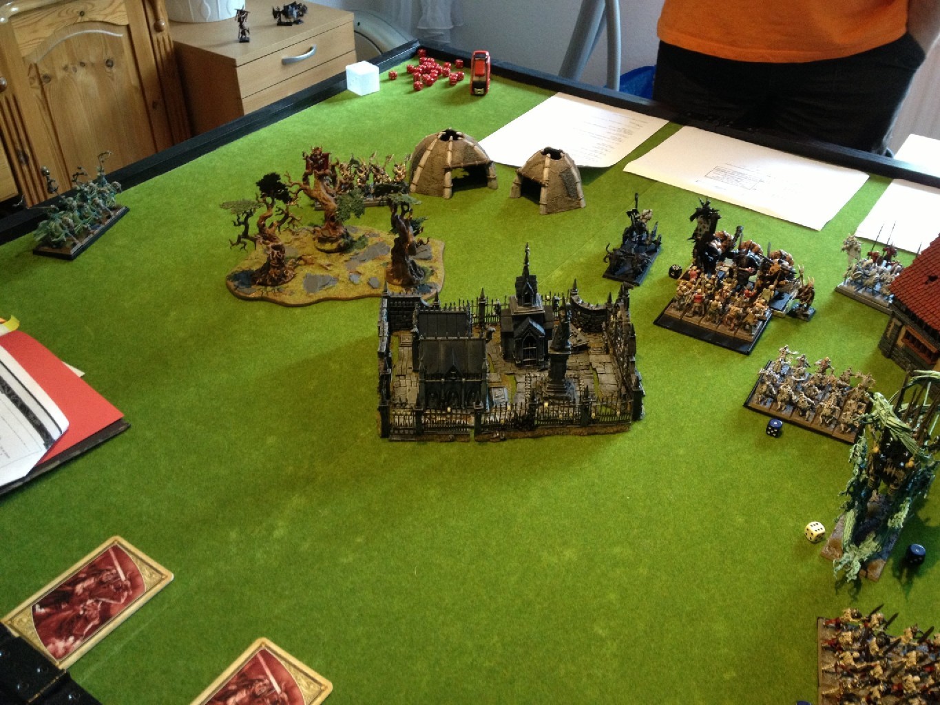 Zeitlich konnten heute zwei Schlachten gespielt werden. Die erste Schlacht dominierten die Vampirfürsten und konnten schon in Runde fünf einen Sieg einfahren, indem alle Einheiten der Tiermenschen vernichtet wurden!